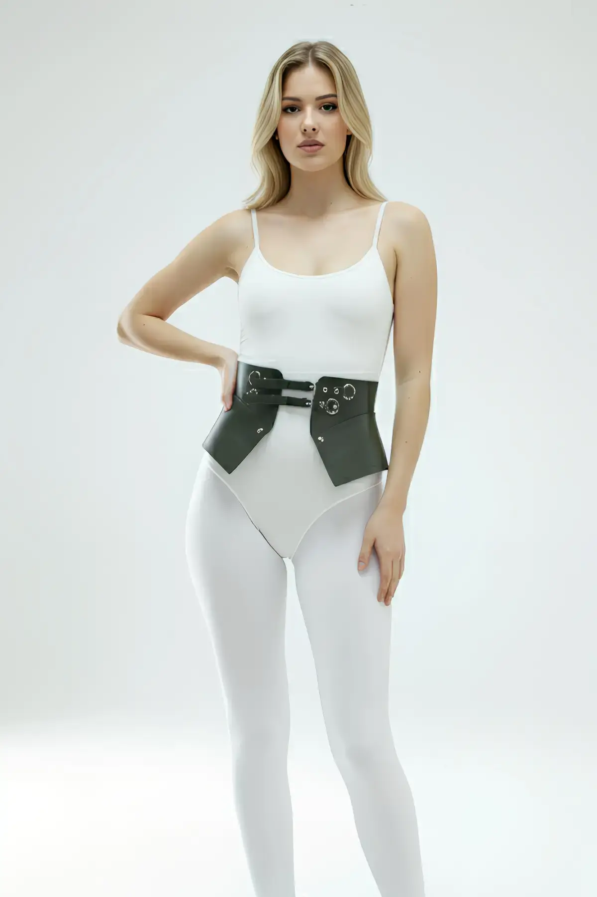 Siyah Kadın Kemer Geniş Korse Detaylı Çift Toka - APFT611
