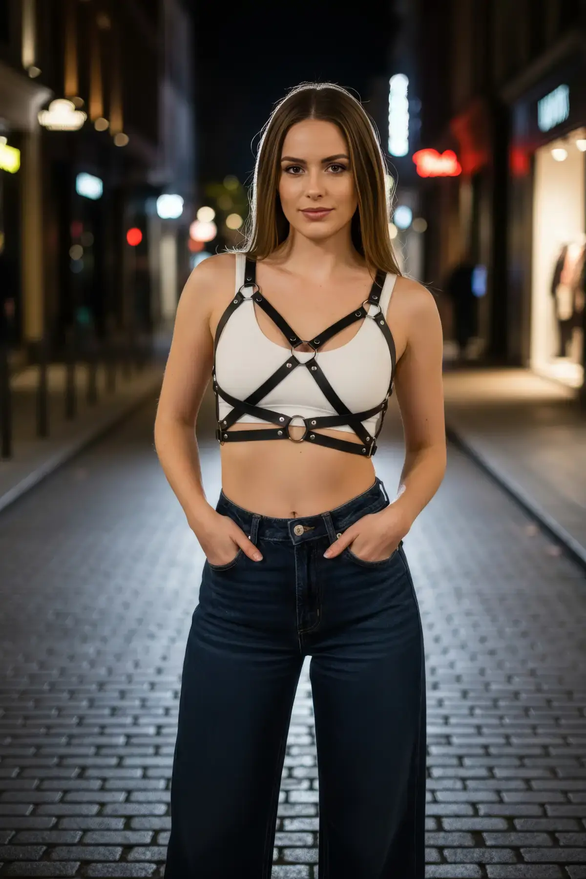 Siyah Kadın Kemer Halka Detaylı Çapraz Vücut Aksesuarı - APFT816