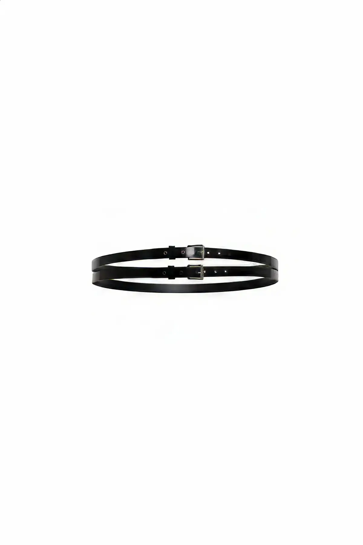 Siyah Kadın Kemer İkili İnce Bel Aksesuarı - APFT1106