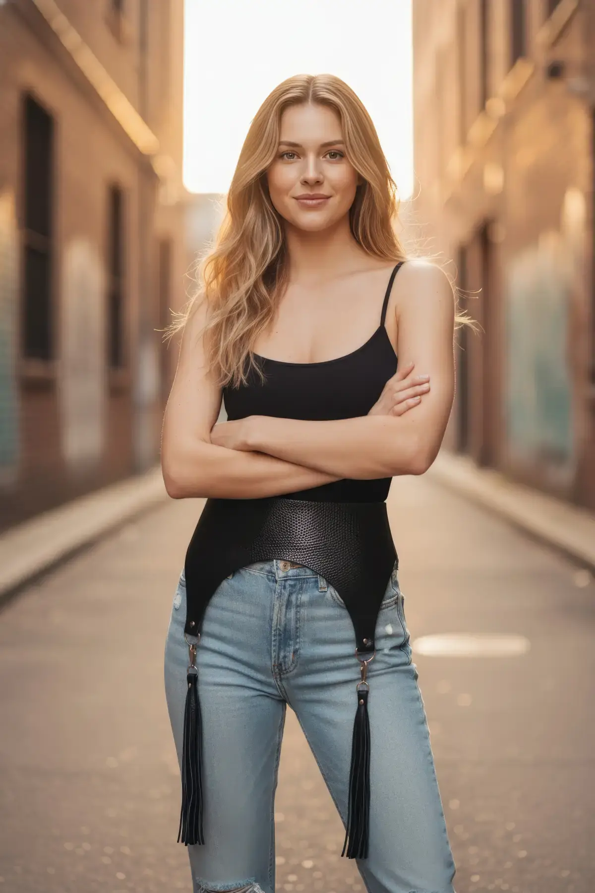 Siyah Kadın Kemer Suni Deri Gövde Aksesuarı - APFT156