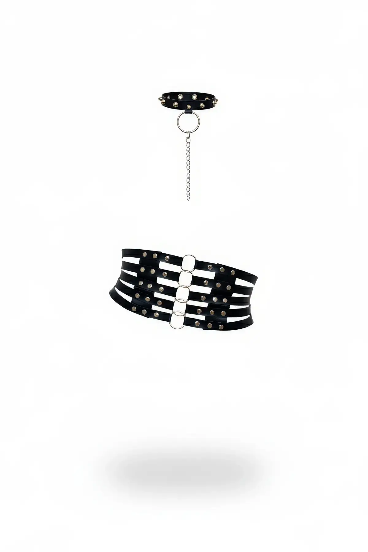 Siyah Kadın Kemer Deri Halka Detaylı Vücut Aksesuarı - APFT110