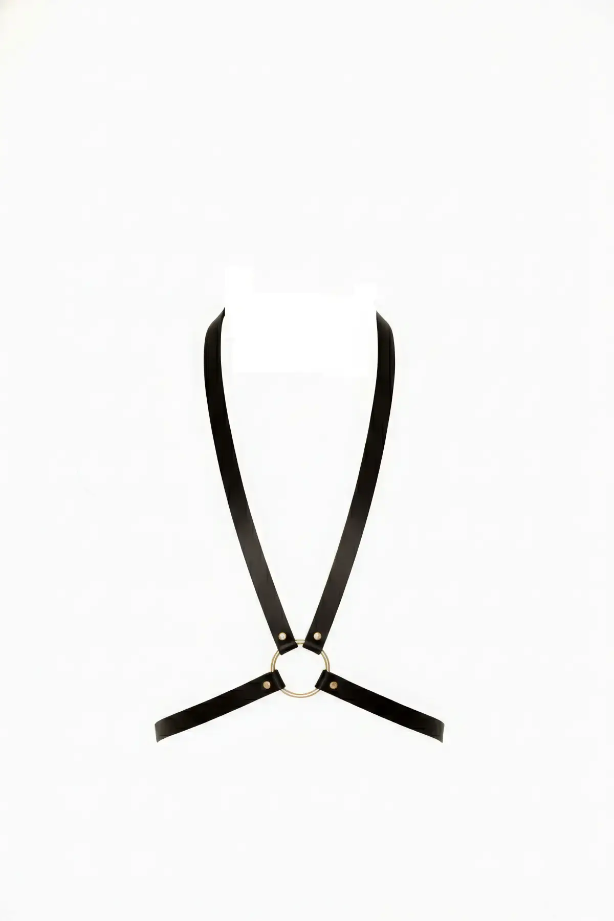 Siyah Kadın Kemer Metal Halka Detaylı Deri Vücut Aksesuarı - APFT131