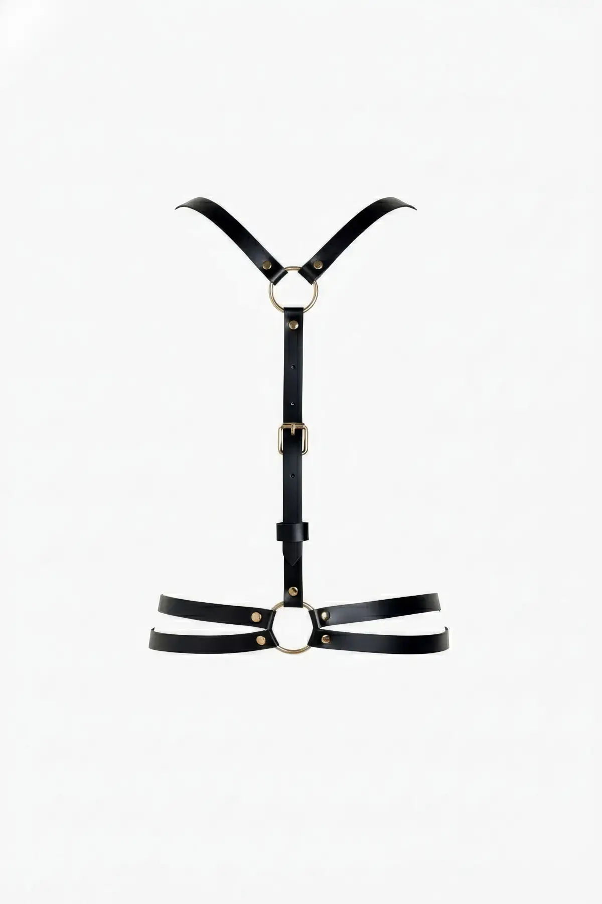 Siyah Harness Takım Zincir Detaylı Deri Vücut Kemeri - APFT1084