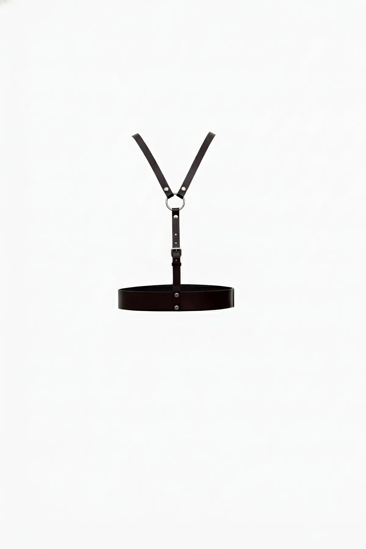 Siyah Body Harness Metal Halka Detaylı Ayarlanabilir Vücut Kemeri - APFT196