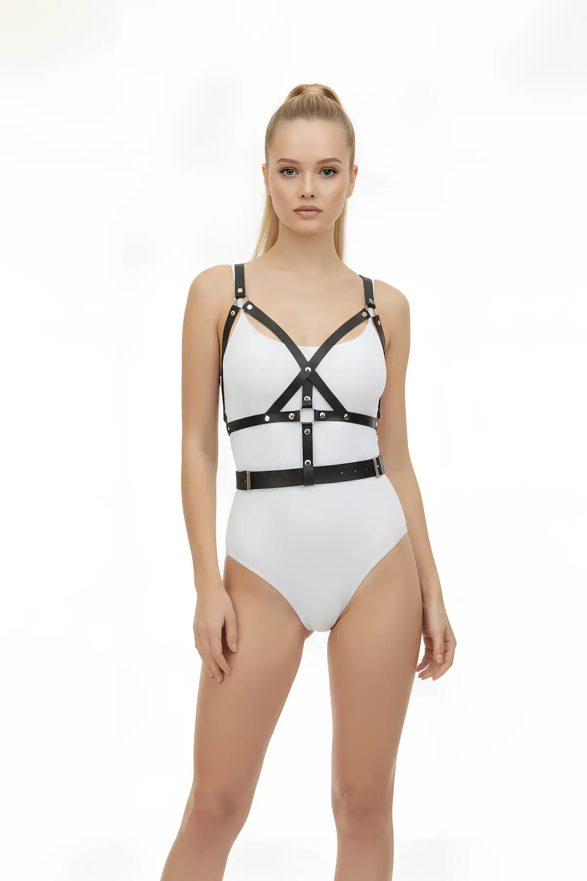 Siyah Harness Takım Deri Zincir Detaylı Vücut Aksesuarı - APFT454