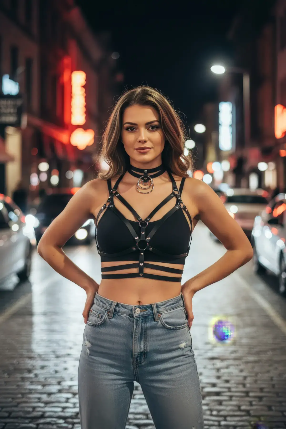 Siyah Kadın Kemer Suni Deri Zımba Detaylı Vücut Aksesuarı - APFT296