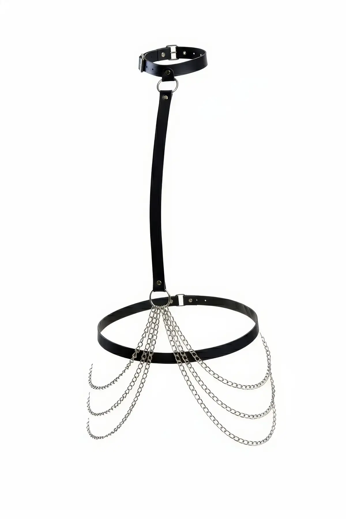Siyah Harness Takım Deri Zincir Detaylı Vücut Jartiyeri - APFT702