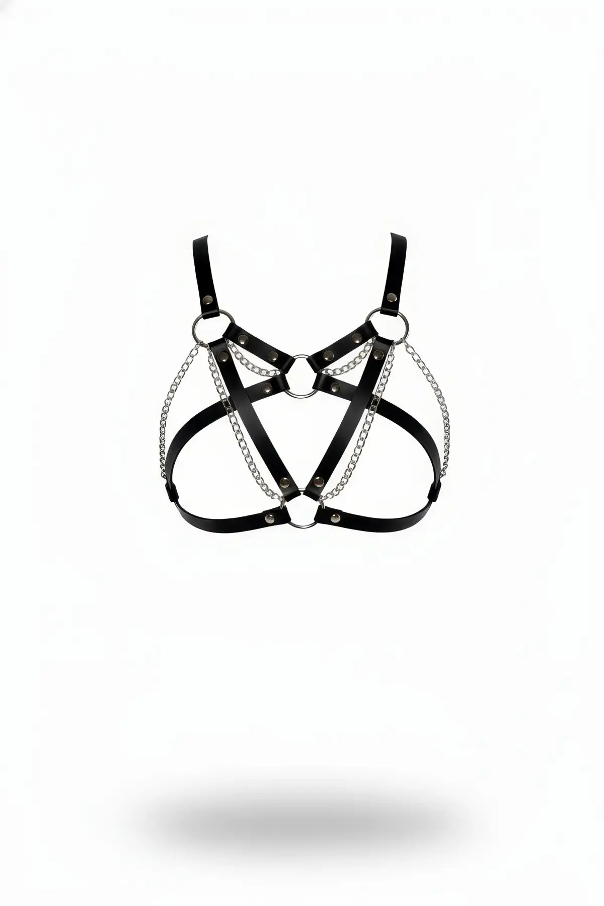 Siyah Harness Takım Deri Zincir Detaylı Vücut Aksesuarı - APFT454