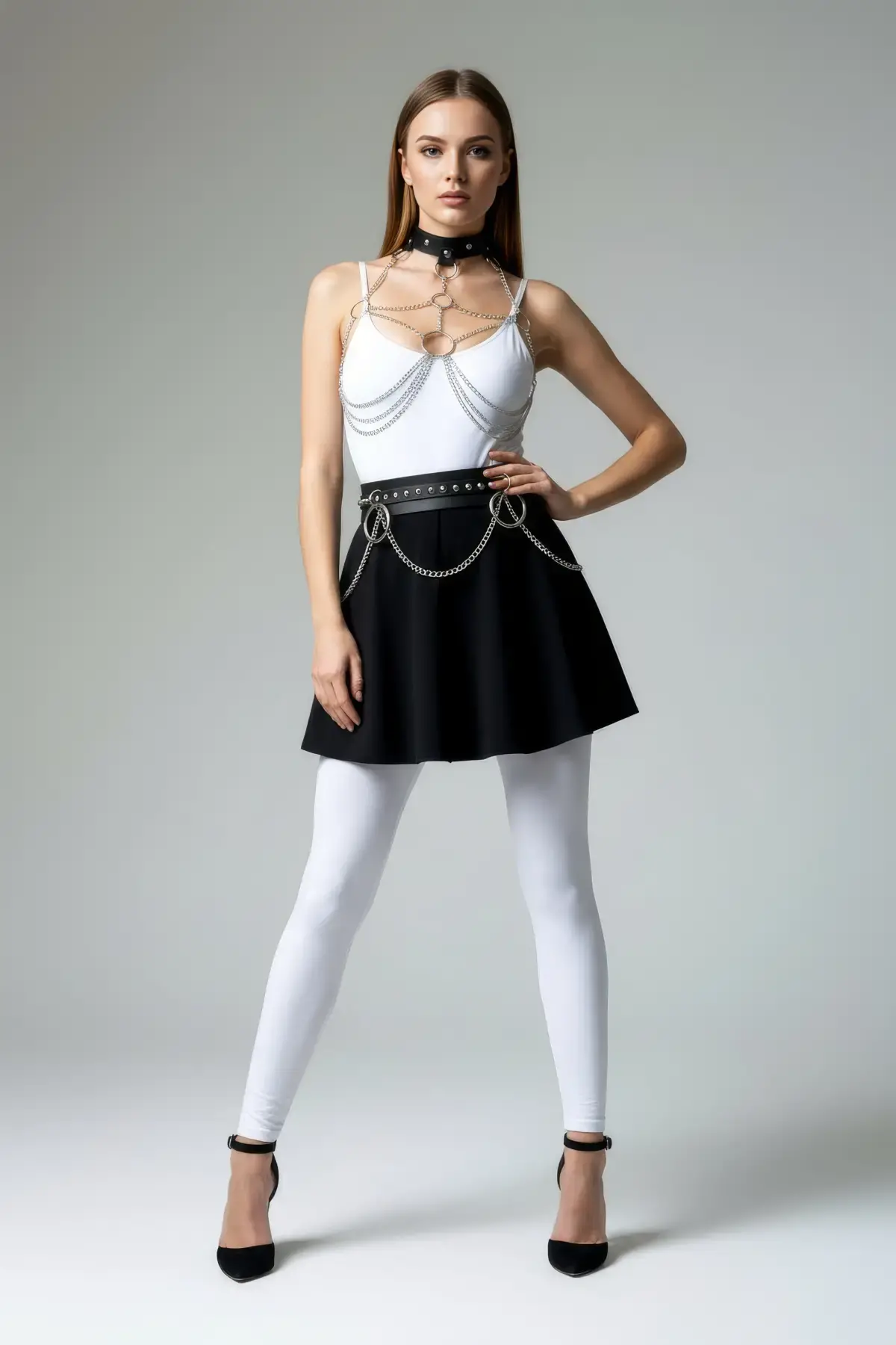 Siyah Harness Takım Zincir Detaylı Tokalı Vücut Aksesuarı - APFT1260