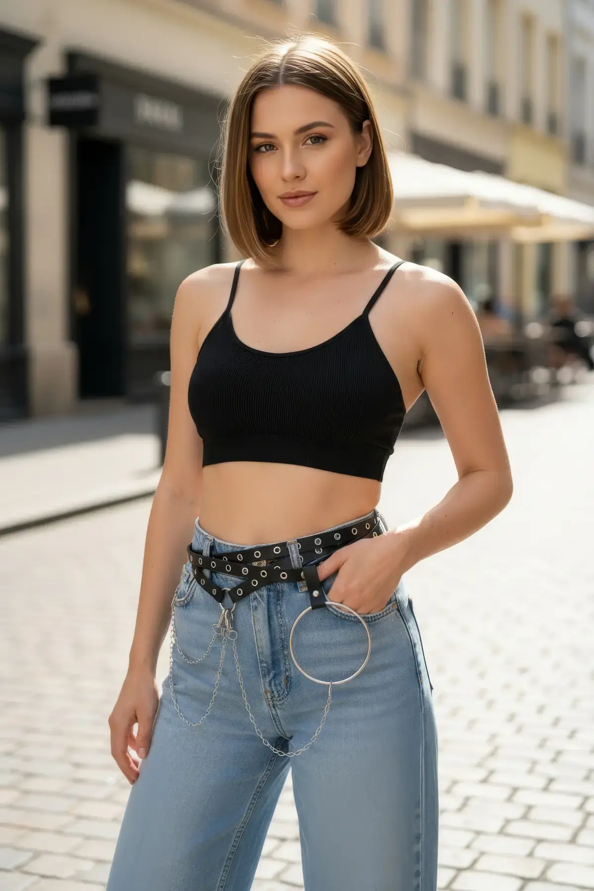 Siyah Kadın Kemer Zincir Detaylı Kuş Gözü Tokalı - APFT621