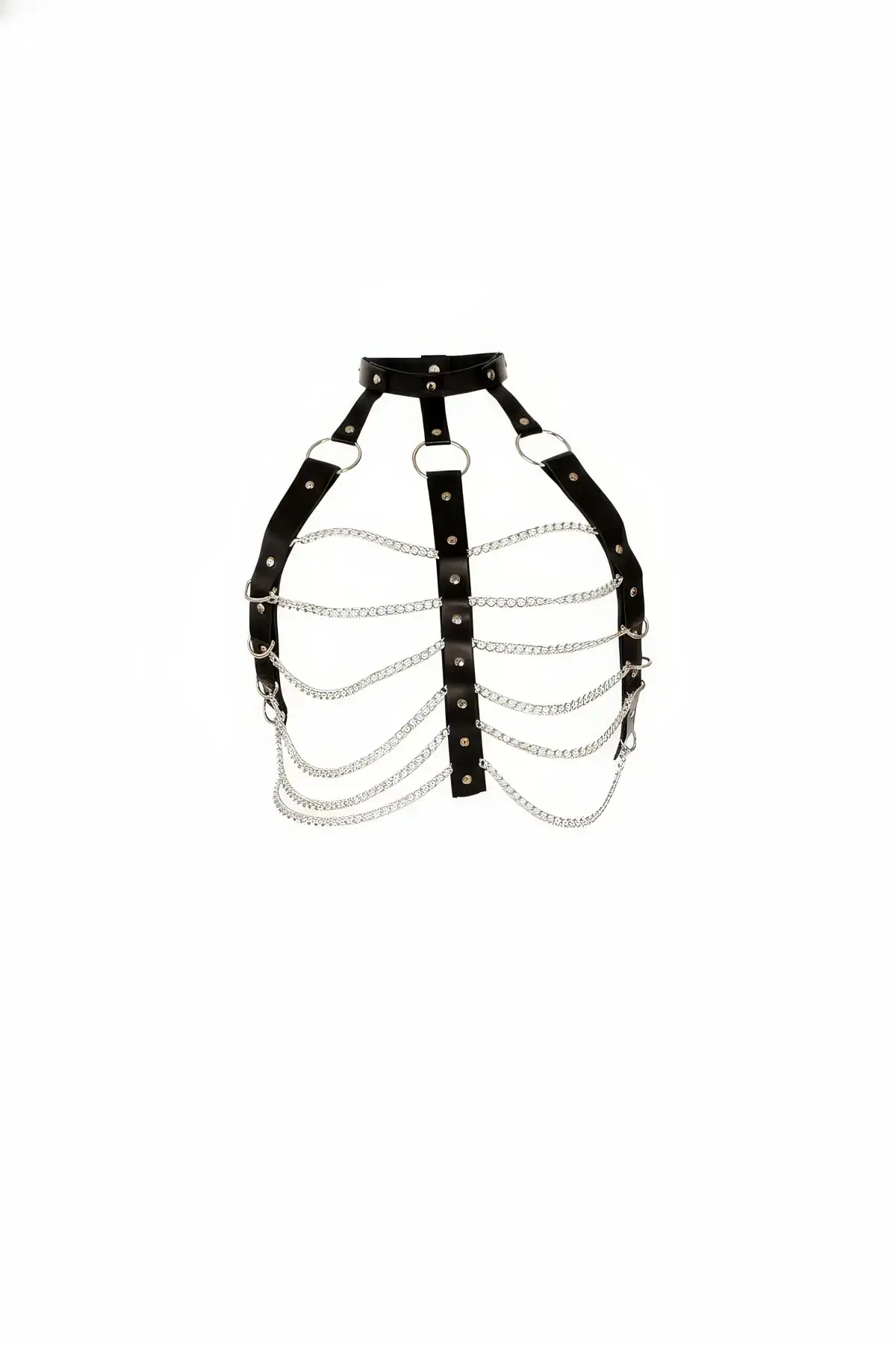 Siyah Kadın Kemer Zincir Detaylı Suni Deri Vücut Aksesuarı - APFT304