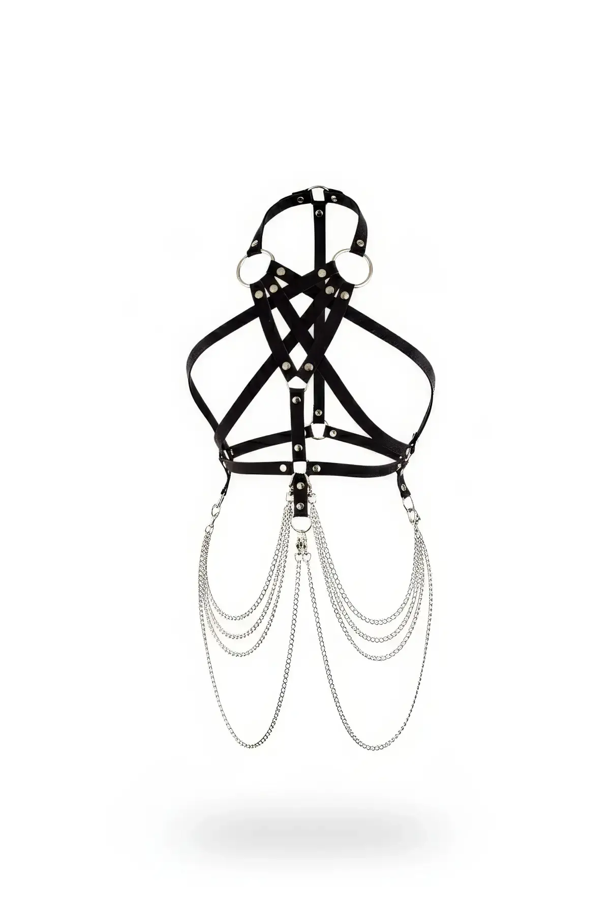 Siyah Kadın Kemer Zincir Detaylı Vücut Aksesuarı - APFT11