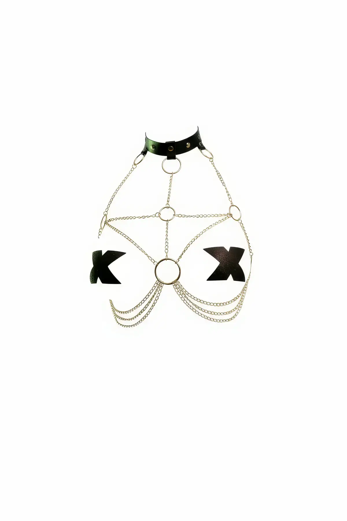 Siyah Göğüs Harness Zincir Detaylı Deri Vücut Takısı - APFT964