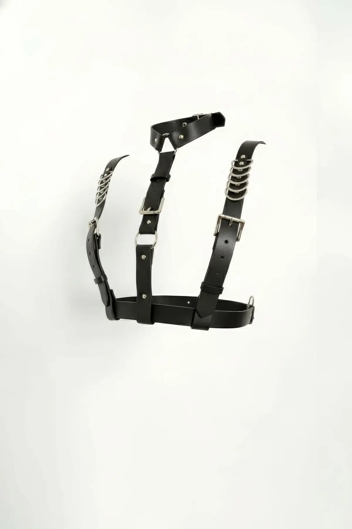 Siyah Kadın Kemer Suni Deri Halka Detaylı Göğüs Aksesuarı - APFT545