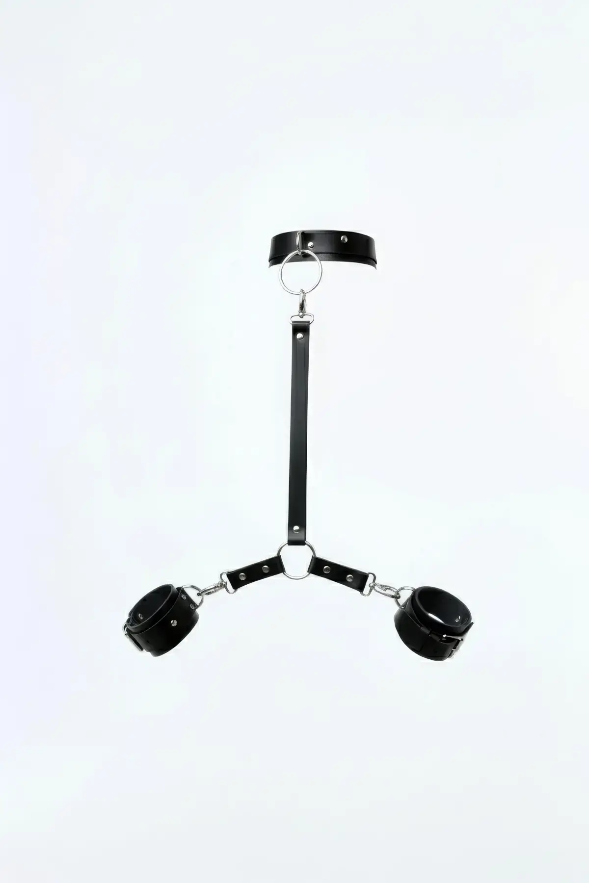 Siyah Kırbaç - Kelepçe Deri Boyunluk Ve Bilek Kelepçesi Seti - APFT459