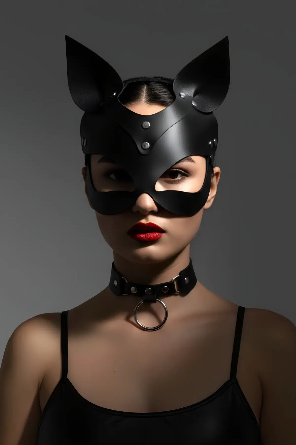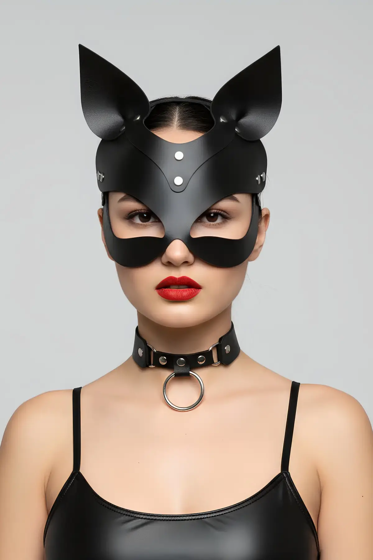 Siyah Maske Deri Kedi Kulaklı Kostüm - APFT789
