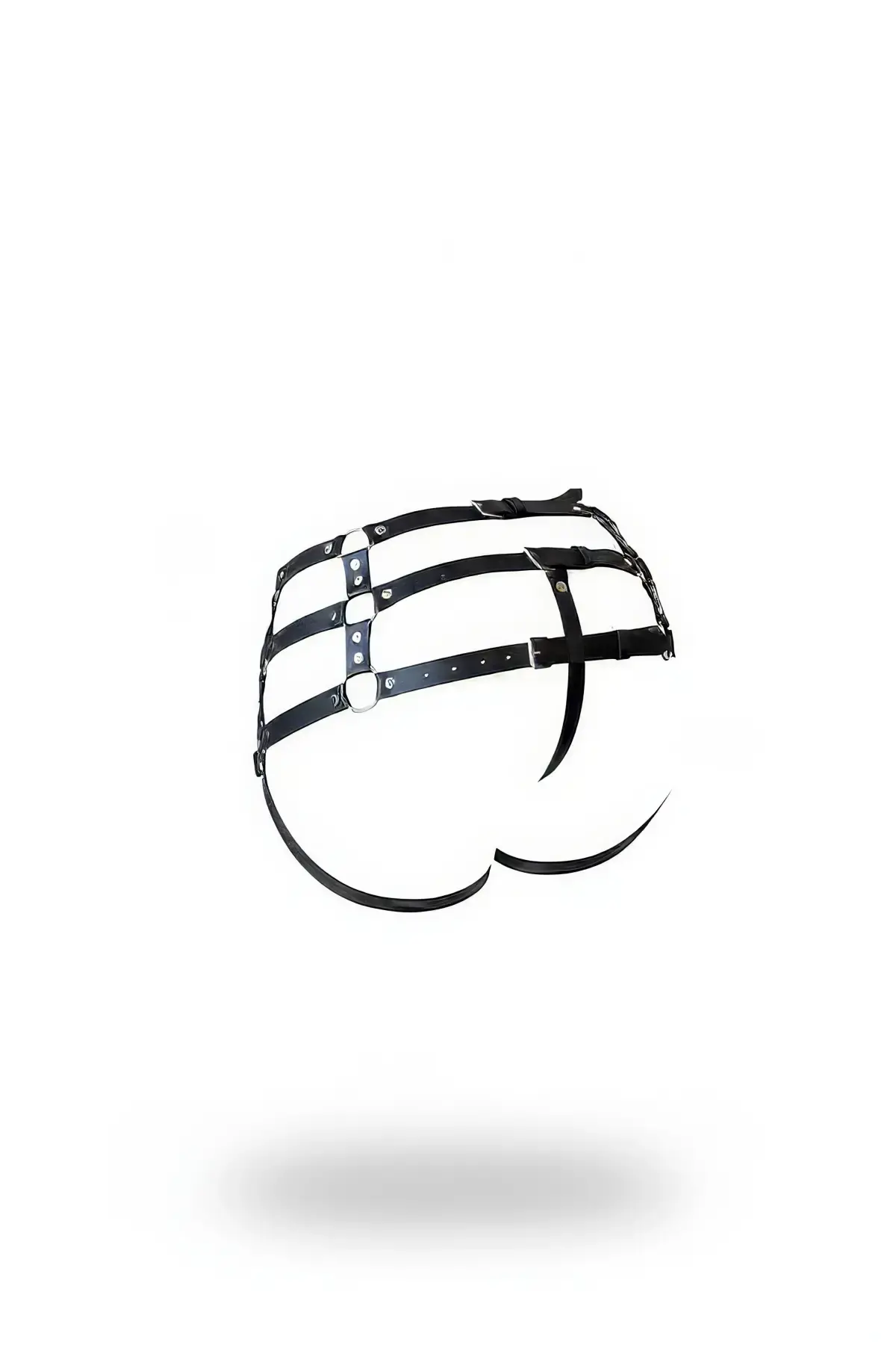 Siyah Göğüs Harness Deri Geometrik Kesimli Metal Detaylı - APFT1404