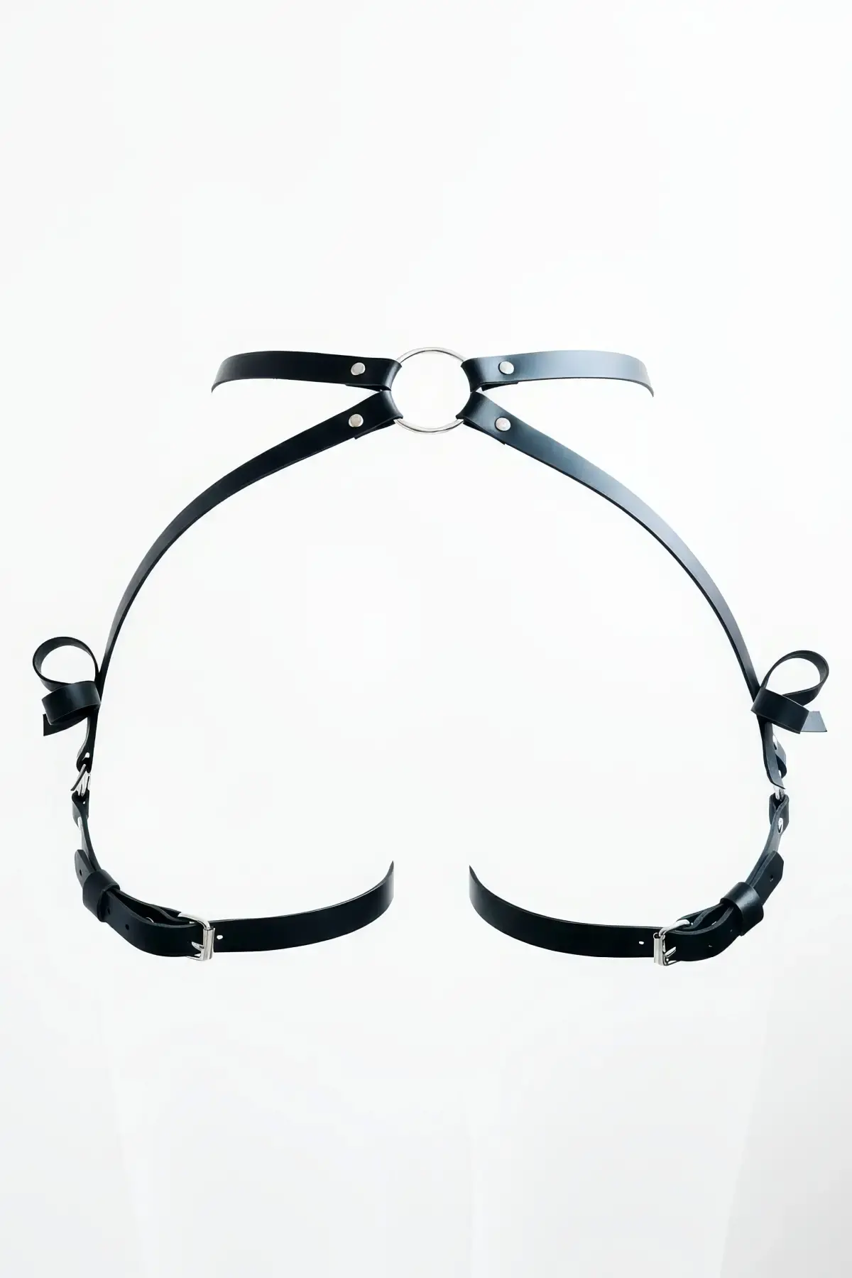 Büyük Beden Siyah Kadın Harness Takım Seksi Deri Halka Detaylı - APFT434