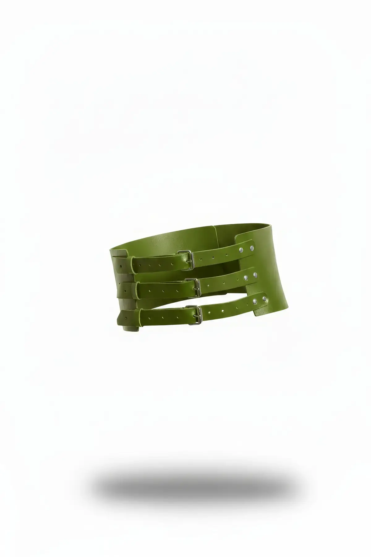 Haki Kadın Kemer Deri Korse Tipi Omuz Detaylı - APFT622